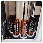 多樣品同時處理三根獨立的工作軸,可以實現(xiàn)一個樣品測試的同時下一個樣品進(jìn)行攪拌萃取,將大大降低單個樣品檢測時間;水樣體積超聲波自動探測裝置,測量水樣體積快速又精準(zhǔn);符合標(biāo)準(zhǔn)要求的棕色水樣瓶可直接用于采樣和上機(jī)檢測